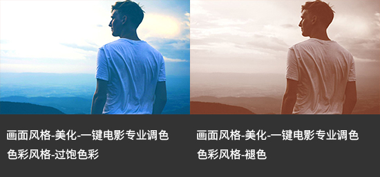 图6:“一键电影专业调色”画面风格不同参数效果对比图