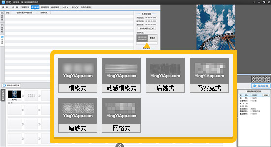 影忆为粉丝们提供了模糊式、动感模糊式、腐蚀式、马赛克式、磨砂式、网格式等多种去水印方式。根据要去水印的画面选择最合适的去水印方式,甚至可以做到几近无痕的给视频去水印。在影忆中添加视频后,按照如下步骤即可为视频快速去水印。